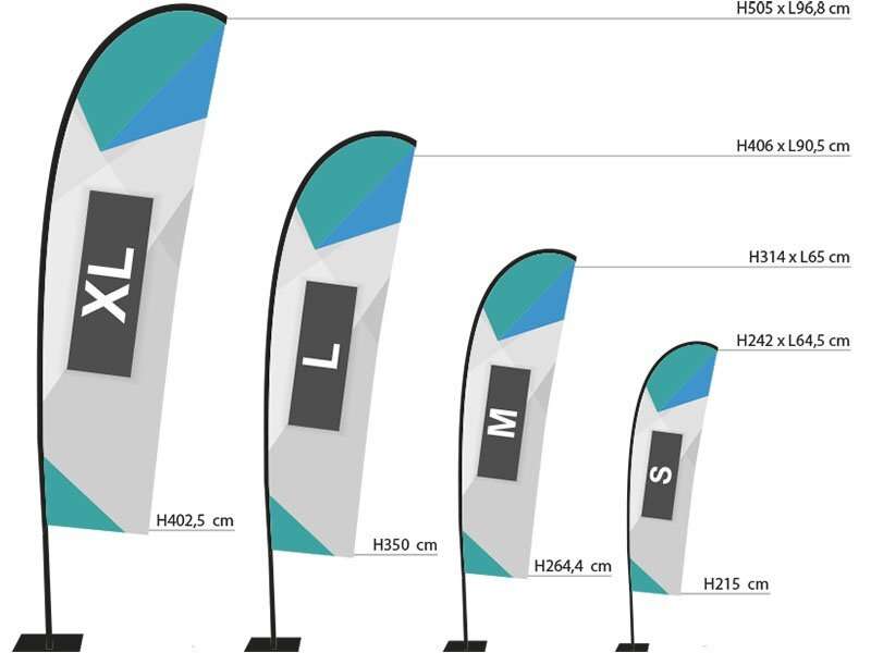 Le bandiere pubblicitarie a coltello (Drop Display) sono progettate per valorizzare il tuo messaggio sia all’aperto che all’interno di fiere e negozi. La stampa in HD è realizzata su telo nautico antivento da 120 g, garantendo resistenza e durata. L’espositore è autoportante grazie a un’asta verticale flessibile in vetroresina (GRP) di colore nero, che permette un facile inserimento del telo. Sono disponibili quattro altezze diverse, da 242 a 505 cm, per soddisfare diverse esigenze di visibilità.
