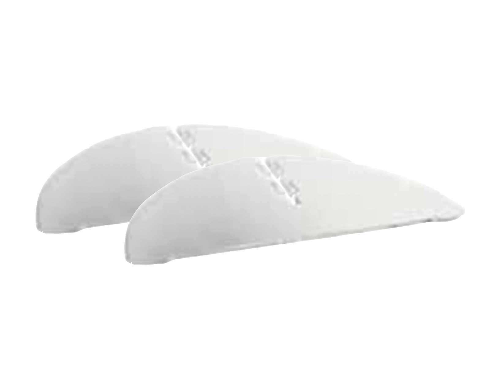 La coppia di supporti in plexiglass trasparente è composta da due piedini a mezzaluna con innesto centrale a lisca di pesce, che permette l’inserimento a pressione del pannello senza l’uso di viti o attrezzi. La leggera curvatura alle estremità garantisce un’ottima adesione al pavimento, assicurando stabilità. Ogni base è protetta da una pellicola antigraffio da rimuovere su entrambi i lati.